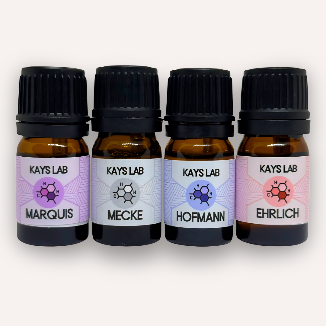 💧 Ehrlich Reagent: This is the essential first step for testing any suspected indole. It will turn purple in the presence of substances like LSD and DMT. Be aware, this reaction can take several minutes (up to 30) to show up.
